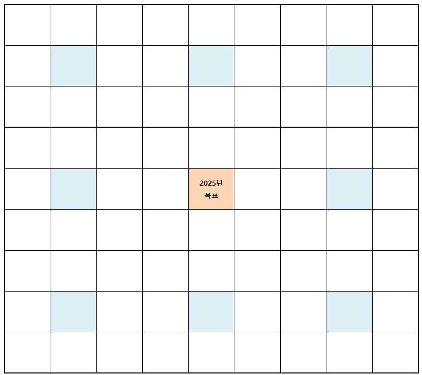 - 주변 8칸에 하위 목표나 관련 주제 배치